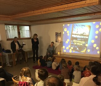 Tatkräftig unterstützt wurde es dabei von Irina Fink (Gemeindebücherei) und Vanessa Osmanaj, die aus der Geschichte des "Schatz im Moors" ein wunderbares Bilderbuchkino gezaubert hat. Gerold Leukert hat wie immer für perfekt funktionierende Technik gesorgt. Von Herzen Dank für die tolle Zusammenarbeit!